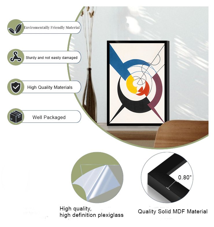 Framed in black Engineered wood with crystal-clear acrylic